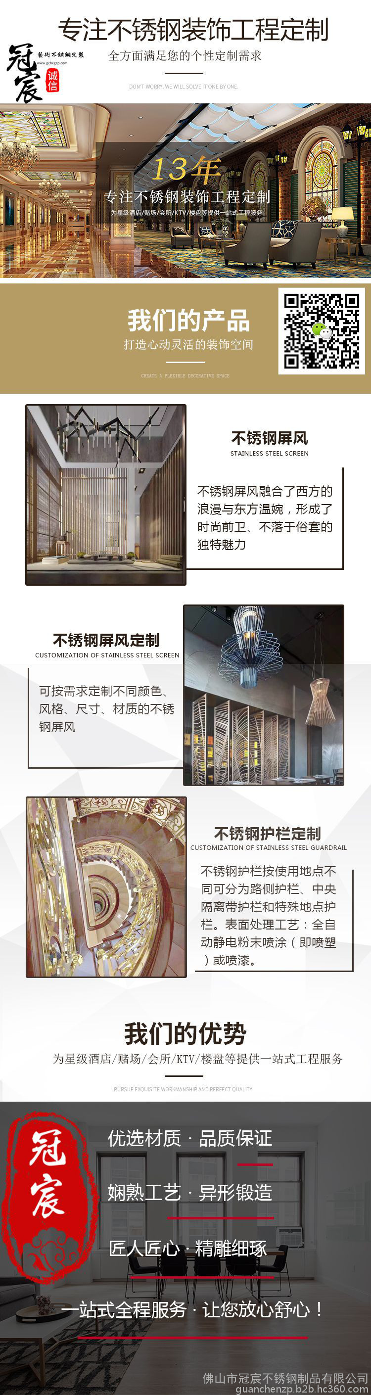 冠宸不锈钢厂家供应酒店不锈钢玫瑰金花格,酒店不锈钢玫瑰金花格是利用304#201#不锈钢板为基材,对其表面进行镜面,拉丝,蚀刻,焊接,抛光,镀色,蚀刻,焊机,镀铜,冲压等多重工艺处理,更多的酒店不锈钢玫瑰金花格可以和冠宸不锈钢王威取得联系。