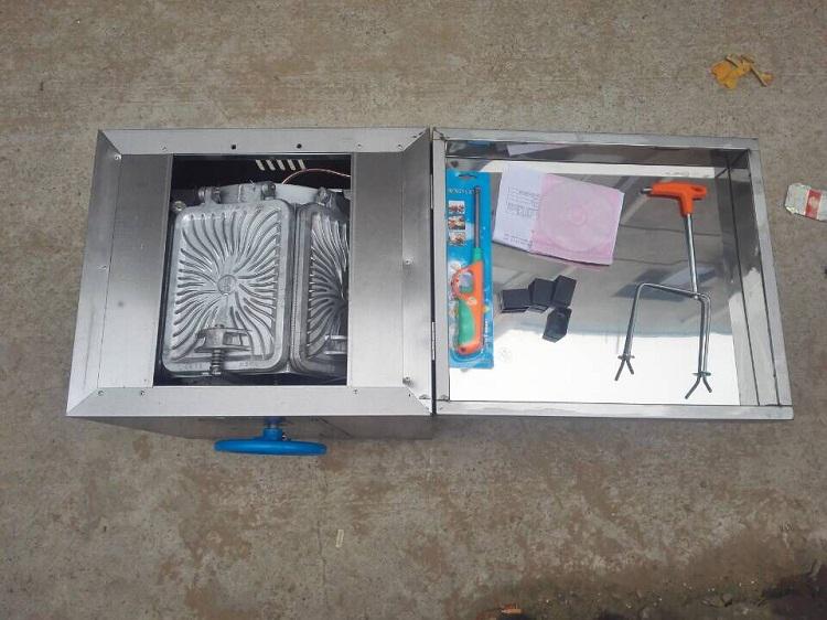1.开箱后,装上手柄,用清水将六对蛋糕模具清洗干净,将炉具放到支撑架上,连接通气管道。