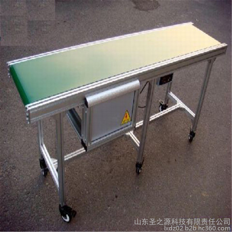 全铝型材皮带线又叫流水线、皮带拉,是输送设备中比较经济的一种。广泛应用于电子、轻工、食品、制药、日用化工等行业。输送量大、平稳,物料与输送带没有相对运动.噪音比较小结构简单,维护方便,能耗小,成本低.全铝结构,拆卸方便.