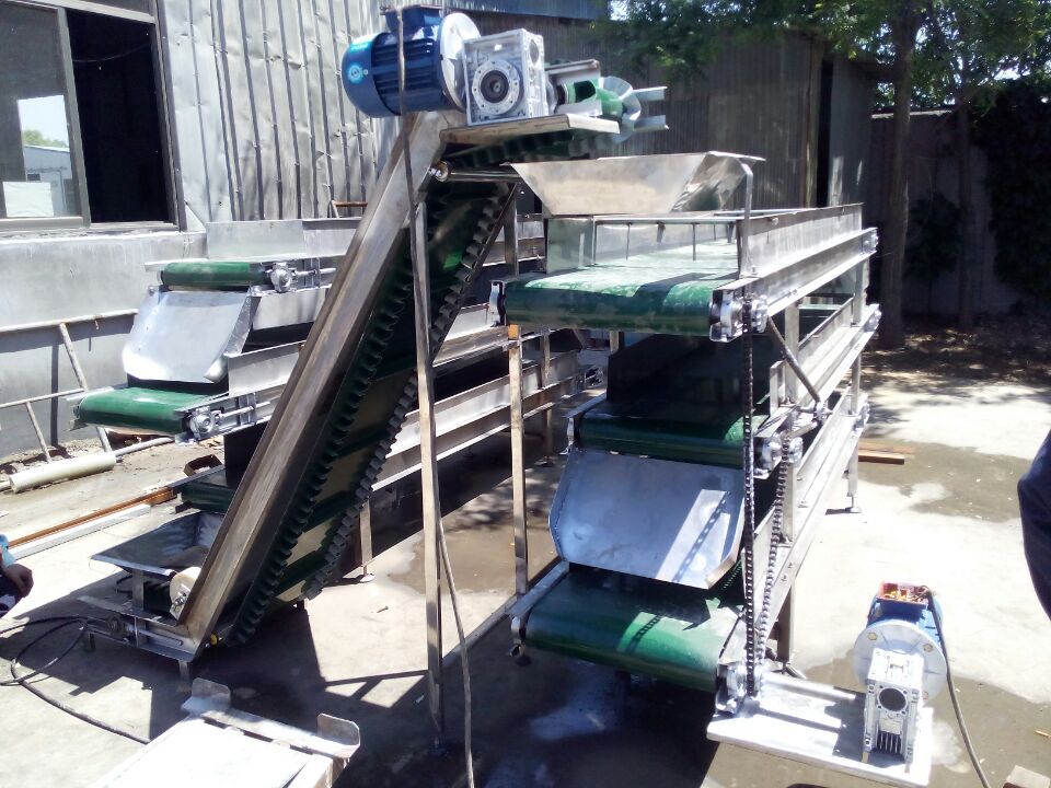 裙边带加料机日用化工输送机使用螺旋张紧或液压油缸张紧时,张紧滚筒的两个轴承座应当同时平移,以保证滚筒轴线与皮带纵向方向垂直,噪音较小,适合于工作环境要求比较安静的场合,载重量:50KG/㎡,结构形式:平型皮带机、爬坡皮带机、转弯皮带机等多种形式,被送物料温度小于60℃调心托辊组有多种类型如中间转轴式、四连杆式、立辊式等,其原理是采用阻挡或托辊在水平面内,能耗较小,使用成本低,适用于输送堆积密度小于1.67/吨/立方米,其机长及装配形式可根据用户要求确定,传动可用电滚筒,也可用带驱动架的驱动装置,重锤张紧处上部的两个改向滚筒除应垂直于皮带长度方向以外还应垂直于重力垂线,即保证其轴中心线水平,具体方法是皮带偏向哪一侧,托辊组的哪一侧朝皮带前进方向前移,或另外一侧后移皮带张紧处的调整是皮带运输机跑偏调整的一个非常重要的环节,皮带跑偏的原因有多种,需根据不同的原因区别处理,欢迎您来厂亲自验货提货,经济实惠,性价比较高,可作为电子仪表装配,食品包装等装配线,在设计过程中应尽可能地加大两条皮带机的相对高度,为减少或避免皮带跑偏可增加挡料板阻挡物料,改变物料的下落方向和位置,支腿可调节,适用范围大