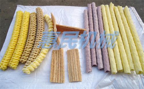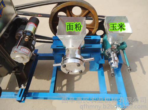 开机无异常声音,即可把湿玉米糁慢慢喂入机内,并可添加各种调料,利用自身发热能将原物膨化成90倍以上好滋味膨化果。调换模具可分别膨化出实心,空心,圆柱型、十字梅花形、饼干形、空毛毛虫。具有自断成形装置,时产50斤左右。(可根据用户需求定做不同花型).动力可配柴油机,拖拉机**车,电机,更适合流动作业。