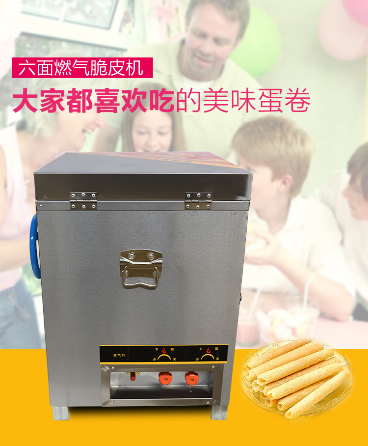 酥(蛋卷)的**理想加工机具。该机具有工艺合理,机体轻 巧,美观实用等特点。所制的蛋卷火色均匀,色泽鲜艳,香酥 可口,清洁卫生。选以**配方,堪称色香味具佳,老幼皆宜 之佳品。嫩黄酥脆的蛋卷是城乡老少皆宜的大众化食品,以 其入口即化,香味浓郁,口感酥脆,营养丰富而深受百姓喜爱。
