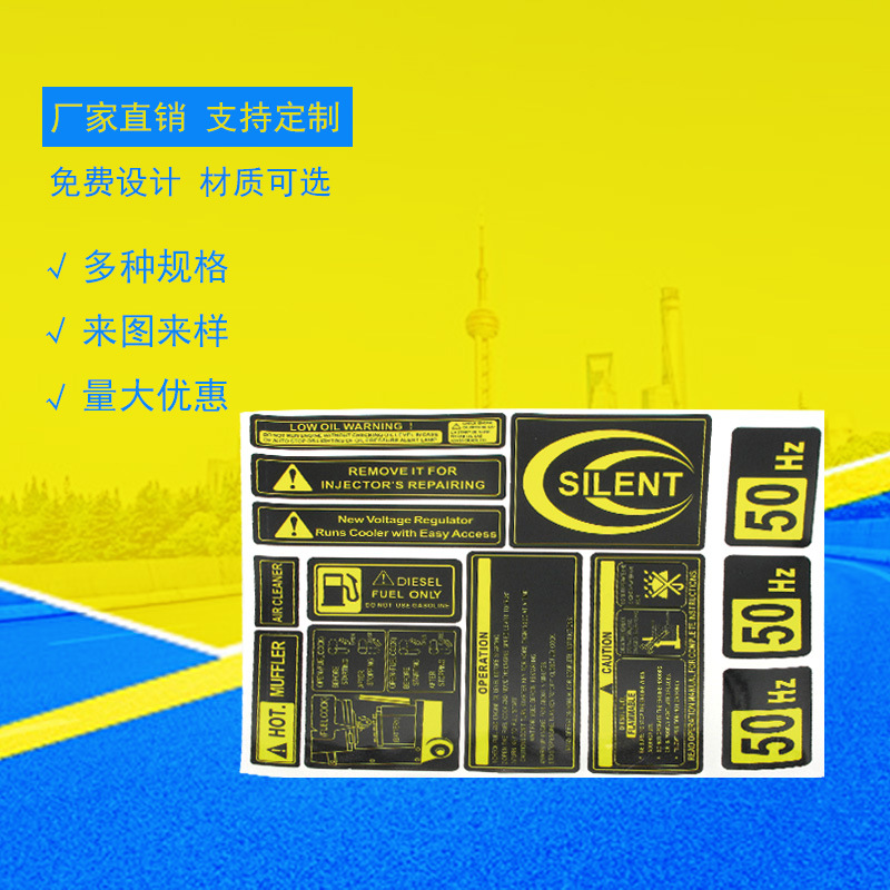 华能厂家定制PVC不干胶标牌机器贴纸开关薄膜标牌塑料标签加工定做