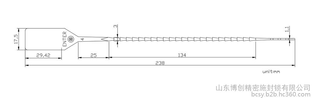 P607型号的塑料铅封是我们的新产品,总长240MM,直径2.8MM。塑料封条有采用烫印的打标方式的,烫印大部分是烫的呈白色的,常规性颜色红、黄、蓝、绿**户要求我们可以给做,其他特殊的颜色如果量大,需要提前告知,预留调试的时间,给予制作。