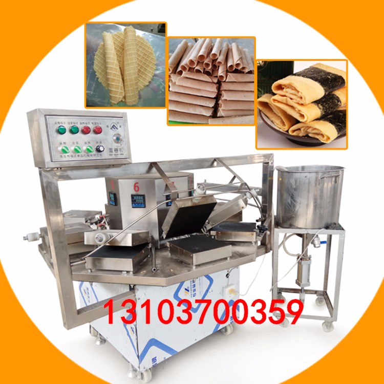 该蛋卷机占地面积小,一人即可操作,投资少,见效快,简单易学,生产出来的产品色泽金黄鲜嫩、老少皆宜,是创业制富,大量生产的理想设备。