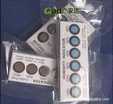 湿度指示卡是一种便捷而廉价的检测环境湿度的安全方法,使用者可以通过卡片上的颜色迅速判断产品包装内的湿度及干燥剂的效果。如果包装中的湿度超过或等于该湿度值,卡片上的对应的点就会从干燥色变成吸湿色,据此可以简易地得知干燥剂的使用效果。