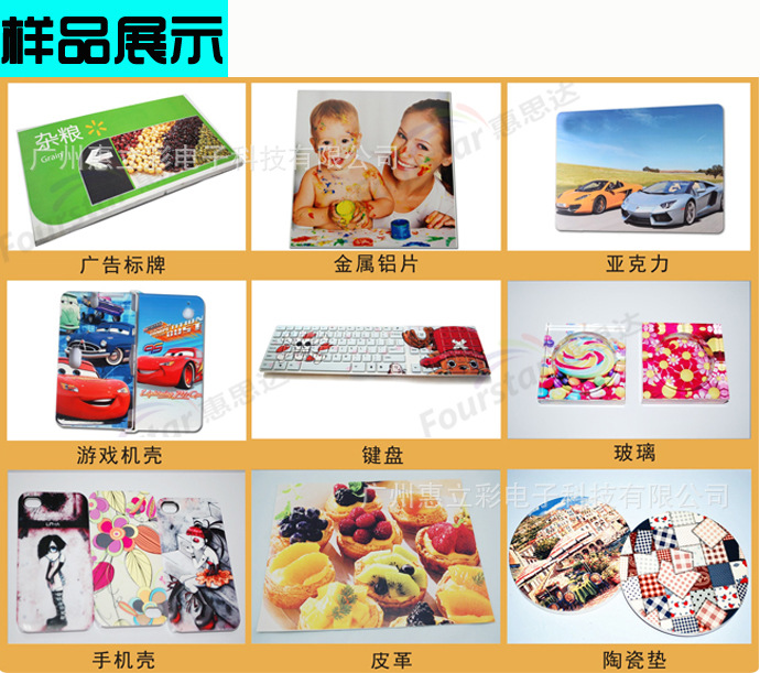 (1).可在任何材质上喷印图片。(如金、银、铁、铝板、水晶、硅胶、木板、玻璃板、皮革、布料、石材等。)(2).可在不规则曲面上喷印图片。(如手机、电话机、U盘、花瓶、钢笔等。)
