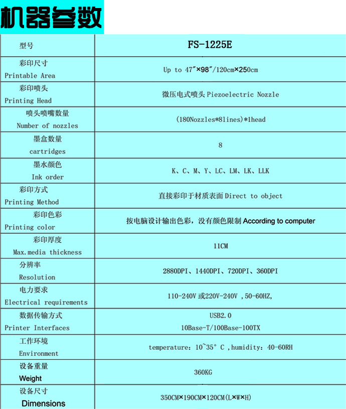 | 印刷幅面 | 超级A0+幅面 1200mm*2500mm(mm) |