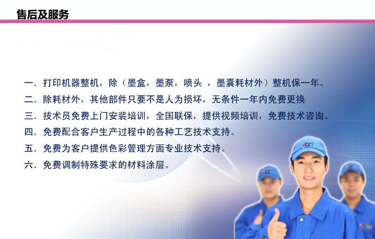产品防水、防油、防晒、不脱色、不褪色,采用八色连供墨水。分辨率高达2880dpi印制色彩逼真,图案清晰**,利息低廉。