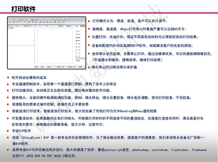 | 软件输出 | UltraPrint(锐彩)RIP软件 |
