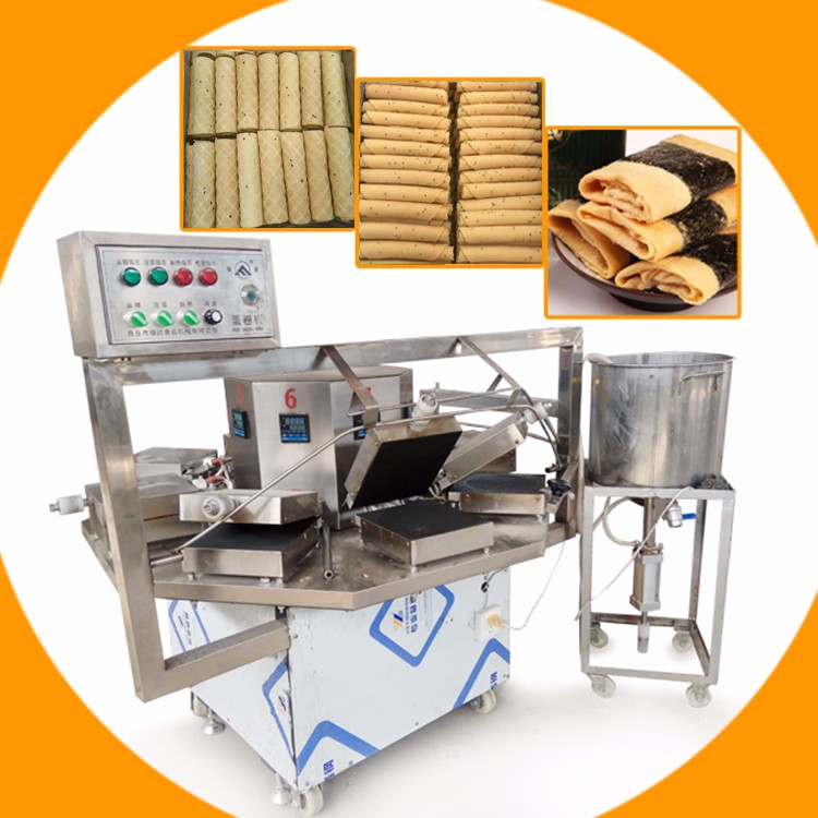 本系列具有机体轻巧、美观实用、操作方便、自动化程度高等特点,使操作者减轻很大的劳动量。所制的蛋卷色泽均匀、香酥可口、清洁卫生。产品已销往各大型厂家及国外,深受广大用户的好评。热诚欢迎各界朋友前来参观、考察,指导。