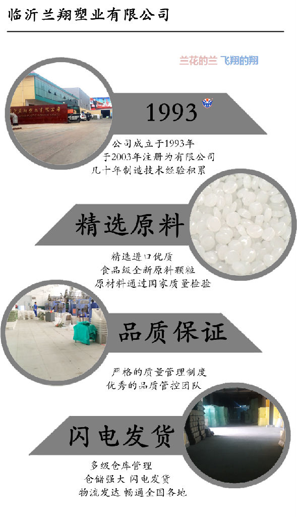 塑料桶厂家——临沂兰翔塑业有限公司,位于山东省临沂市兰山区半程镇工业园金锣一路与新程一路交汇向北一百米路东。 工厂成立于1993年,其前身是临沂市兰山区半程供销社塑料厂,于2003年8月注册为“有限公司”,本公司生产的“兰翔”、“鑫兰翔”牌系列塑料桶在市场具备了良好的美誉度和诚信度,赢得了良好的口碑,得到了客户的认可,产品销往全国各地 现拥有20余条先进生产线生产1L至20000L塑料桶,其中包含食品塑料桶,化工桶,圆桶,异形桶,立式塑料水塔,卧式塑料桶等。也可来样加工定做各种塑料桶。