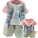 中童秋装新款5折*男童水洗褶皱背心牛仔服格子衬衫三件套 Yk9085