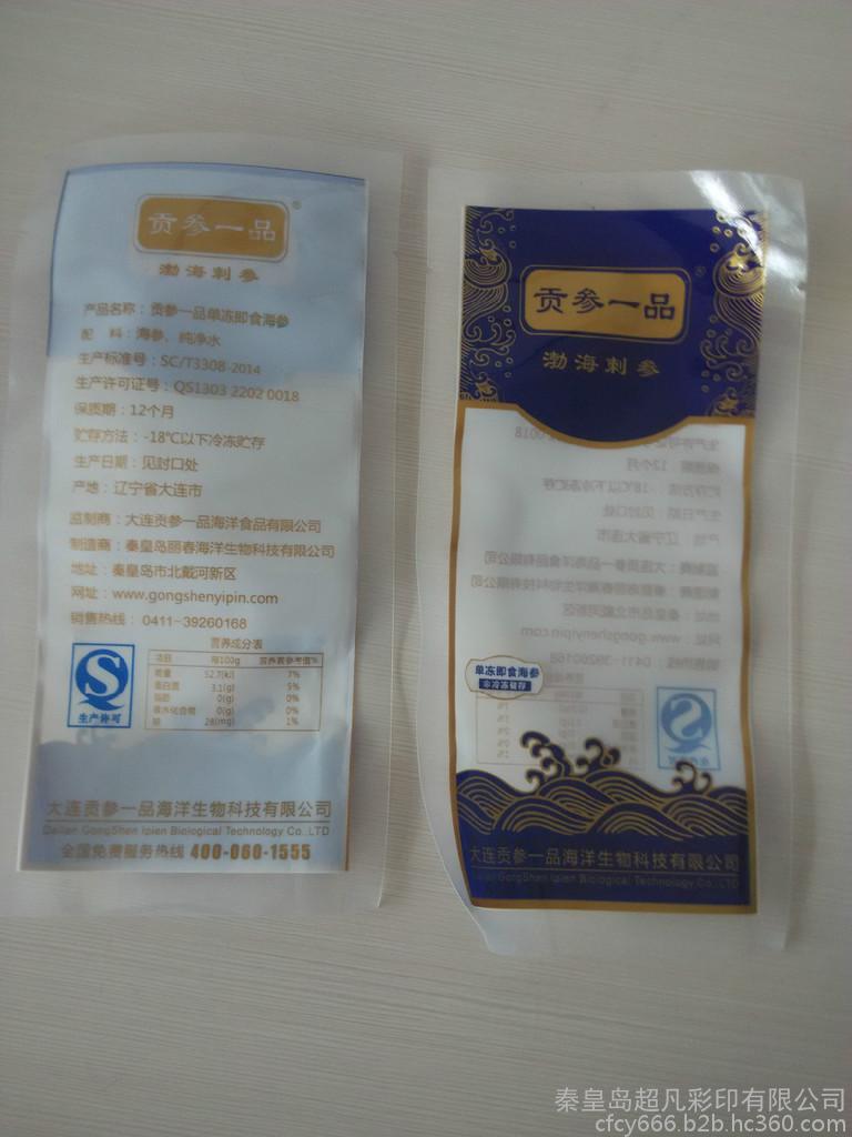 秦皇岛超凡彩印有限公司位于黄金海岸大蒲河经济开发区,公司投资800余万元,拥有8色电脑印刷机一台,6色一台,吹塑机两台,高速复合机两台,各种制袋机6太,可生产各种塑料软包装(服装袋、食品袋、农肥袋、水煮袋、真空袋、冷冻食品袋、塑料不干胶标签等塑料软包装)。公司采用高科技人性化管理,成立人事部、业务部、财务部、检验部、市场营销等相关部门,公司人员30余人**技术人员9人,负责产品研发,生产,公司已通过QS生产许可认证,出口商品检验检疫认证。