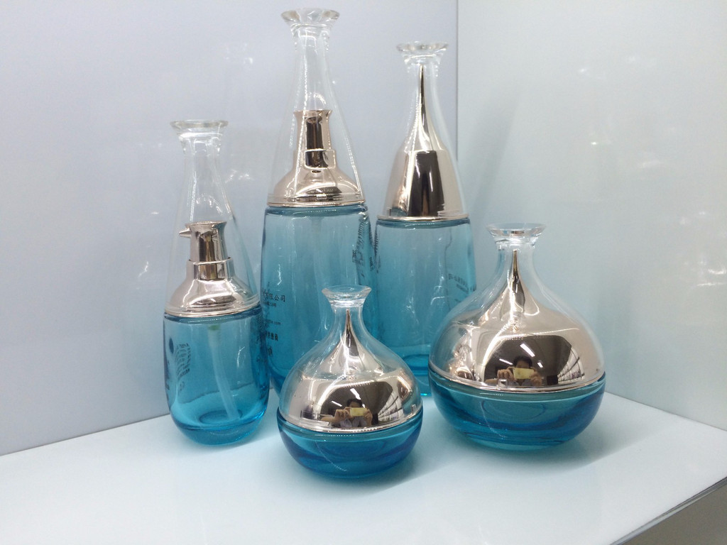 本公司生产化妆品玻璃瓶(膏霜瓶,精华素瓶,乳液瓶,水瓶),瓶子加工艺,并为广大客商提供相关的盖子,泵头,罩子等瓶子配件,专业为化妆品公司,化妆品厂提供一条龙的包装服务.