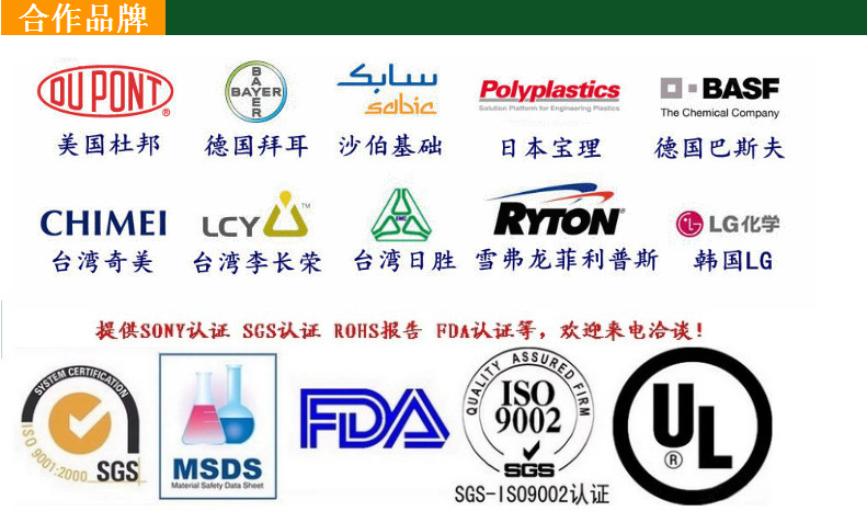 | 特性级别 | 标准级,高光泽,高抗冲,高强度,耐老化,透明级 |