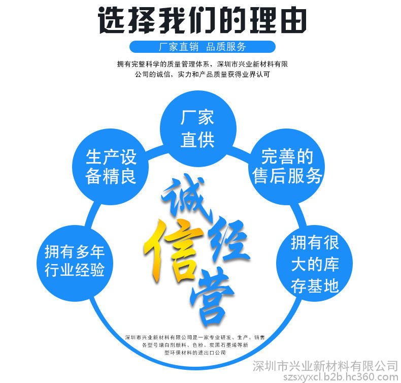 深圳市兴业新材料有限公司是一家专业研发、生产、销售各型号增白剂、颜料、色粉、炭黑等新型环保材料的进出口公司,及主要从事石墨烯粉体材料环保制备工艺的开发,以及石墨烯各级应用产品(如:石墨烯粉体材料、石墨烯功能浆料、石墨烯导电浆料、石墨烯防腐涂料 石墨烯导热散热涂料、石墨烯散热片等)的研发、生产销售。
