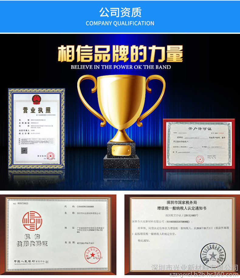 公司秉承“自主创新、合作研发、共同发展”的商业追求,竭诚为客户提供**的产品、合理的价格、完善的售后跟踪服务;公司一直以“诚信为本、共赢天下”作为企业价值观,获得了业界的大力支持和认可;并在行业中取得较高的声誉与口碑;公司秉承“兴业新材、精益求精”的企业理念;高效率、高标准的为客户提供满意的服务,全心全意与各界朋友携手合作 共创美好未来!