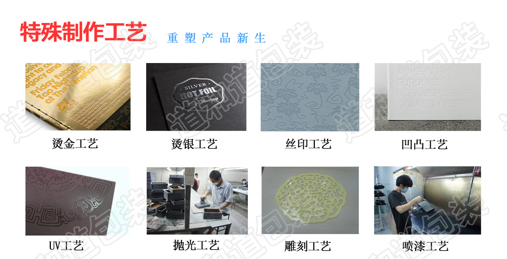 | 工艺 | 压纹 烫金 激凸 UV印刷等 |