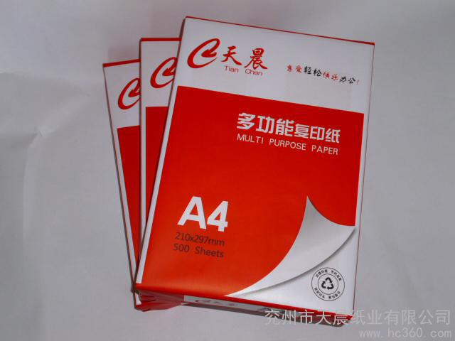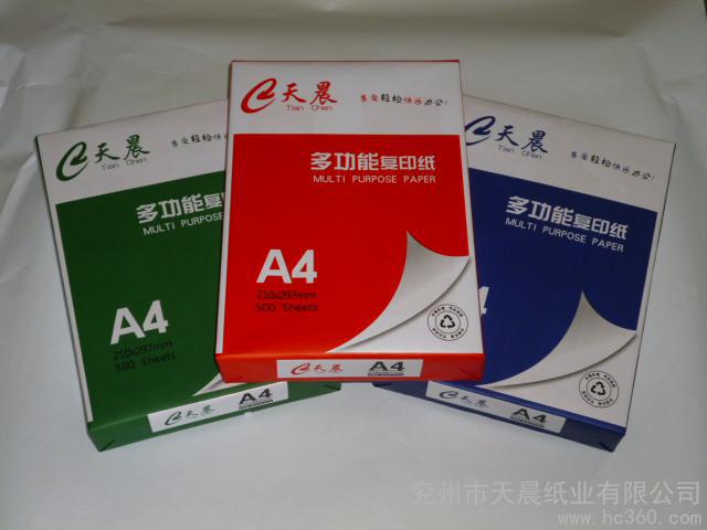 本公司供应复印纸,品牌 天晨 鲁圣鲁都鲁豫,型号A4 A3 B4 B5 8K 16K 。参数为:重量 17.6,适用机型 任何,品牌 天晨,类型 任何,规格 任何,定量 200。质量保证,欢迎咨询洽谈。