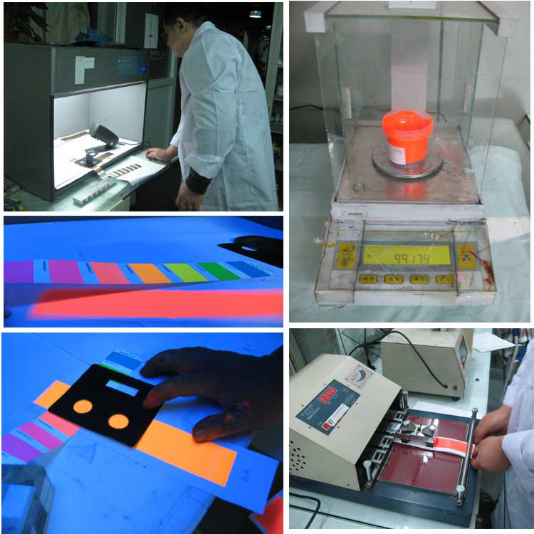 本产品色泽鲜艳、干燥性能好、浓度高、印刷适性优良,其颜色符合美国PANTONE公司801~807荧光油墨的颜色标准。