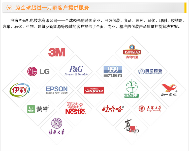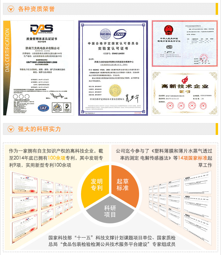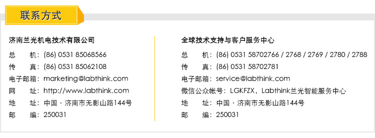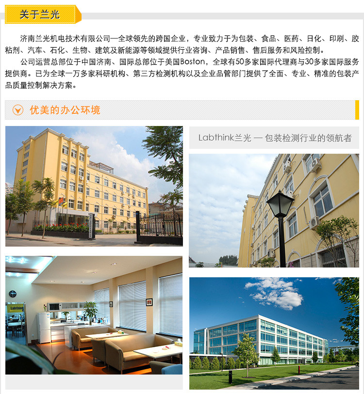 Labthink兰光(济南兰光0531-85068566),是一家专业致力于为包装、食品、医药、日化、印刷、胶粘剂、汽车、石化、生物、建筑及新能源等领域客户提供行业咨询、产品销售、售后服务、风险控制的全球性跨国企业。从成立至今,公司一直秉承“做专业的包装安全管控专家”的原则和“以客户为中心”的服务理念,已经为全球超过1万多家科研机构、第三方检测机构以及企业的品管部门提供了全面专业的包装产品质量控制解决方案。