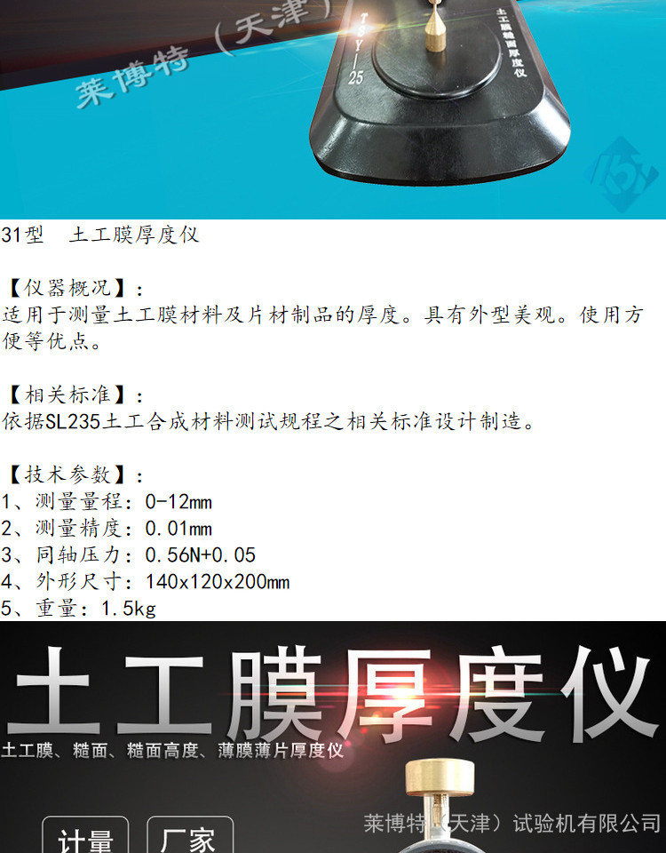 | 用途 | 薄膜测厚仪适用于塑料薄膜、薄片的厚度测试 |