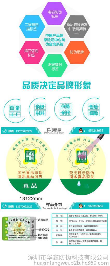 华鑫防伪(服务热线:400-998-3938)是一家高端行业防伪技术综合应用服务商.主要防伪手段有:防伪标签,防伪标示,防伪标识,防伪印刷,深圳防伪标签,防伪标签印刷,二维码防伪标签,防伪二维码标签,国外防伪标签,人民币技术防伪,人民币技术防伪标签,