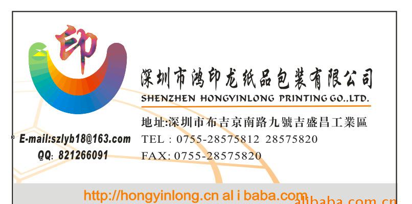 深圳市鸿印龙印刷纸品包装有限公司座落于深圳布吉京南路吉盛昌工业区,交通便利,印刷设备齐全,拥有全新五色、四色、双色、单色印刷机,不干胶印刷机、VU轮转机,啤机、烫金机等印刷设备,能充分满足各种类型的印刷需求。 具有创意设计、制作输出、印刷加工、售后服务一条龙生产服务能力。