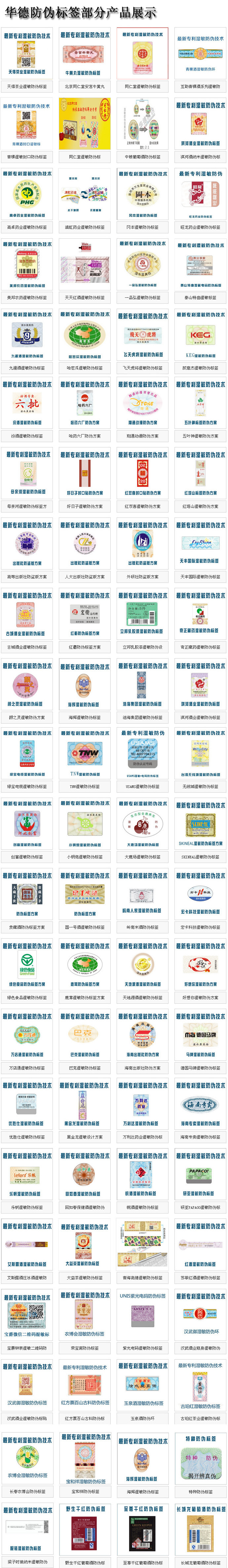湿敏防伪 材料防伪 激光防伪 油墨防伪 制版防伪(印刷防伪) 数码防伪 电码防伪 二维码防伪条码防伪 特种防伪等40多种综合防伪技术。