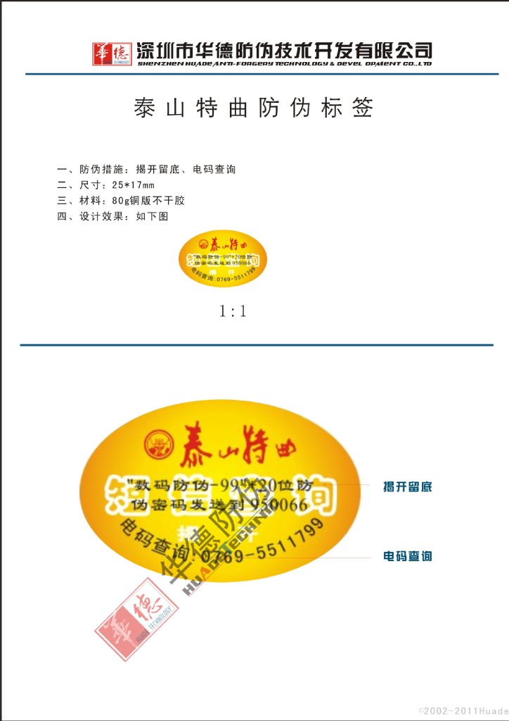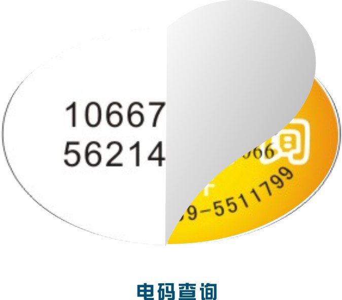 2、揭开留底:标签被揭起后会留下背面预设图文信息,并不可重复使用,保证了标签不会被盗用。