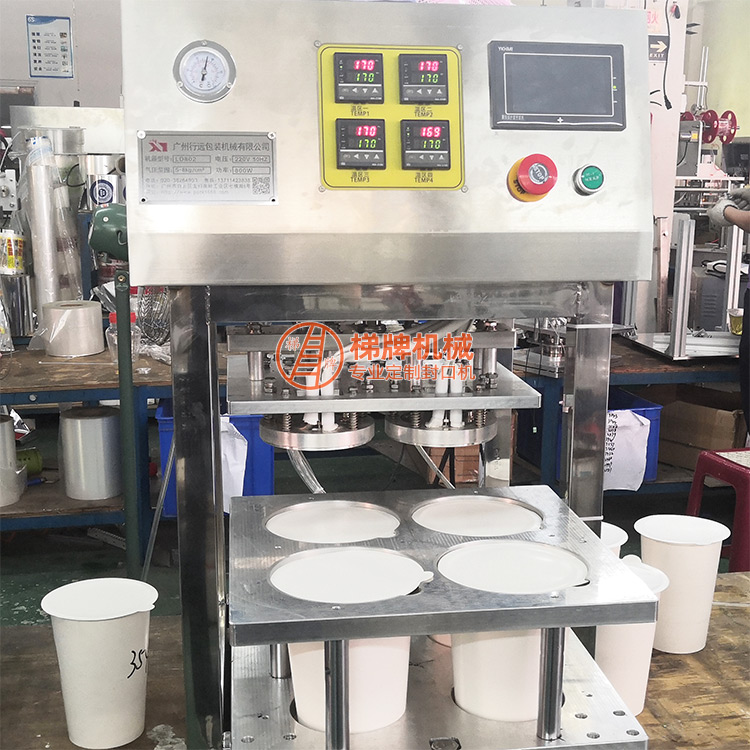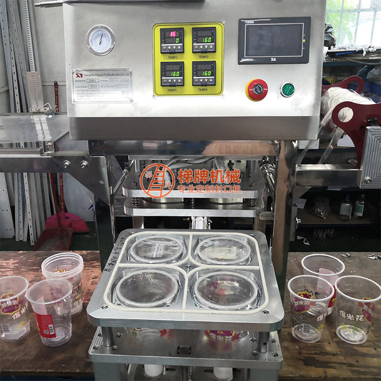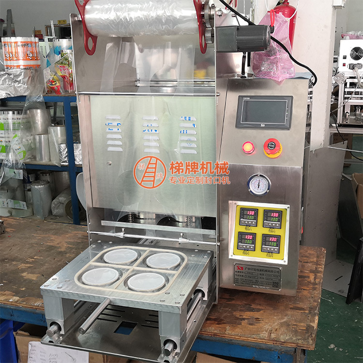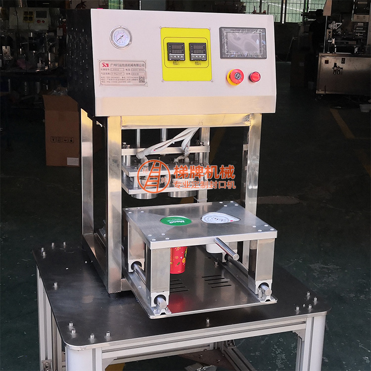 梯牌机械封口机 机箱采用**加厚304不锈钢,全铝质成型模具(CNC精雕成型),多功能PLC控制系统,人机操作界面,一键式启动,操作方便。光标/色标自动定位,按需求装置打码器。包装容器适用杯/碗/盒/瓶/桶等各种大小形状的容器;封口膜有铝箔膜/片膜/PET/PP/PET/PS/PE等各种材质。