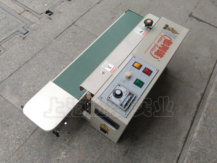 3、该款封口机是将塑料包装袋连续不断地由传送→送进→封口→冷却→滚花或印字。具有连续封口效率高、封口质量好、结构合理、操作方便等特点。可与各种包装流水线配合使用,其封口长度不受限制,并适应于各种不同材料的塑料薄膜袋。