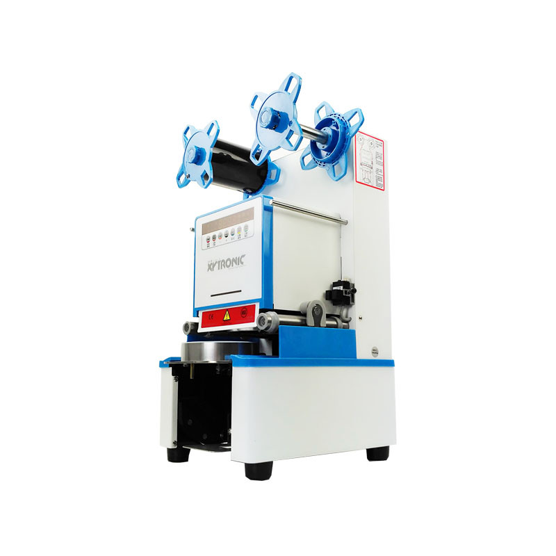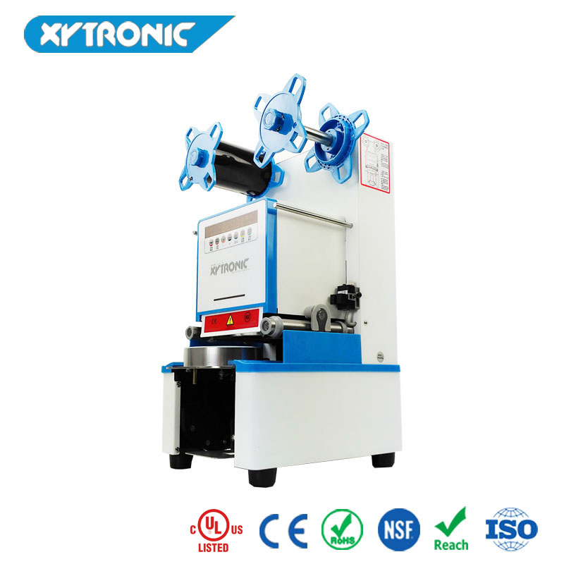 9.台式自动封盒封盖机适合于纸制餐盒,微波食品,外卖杯,尼龙,PP,PE,PS,OPS,PET,低发泡等材质容器,封口膜冷热杯,碗杯的封口;