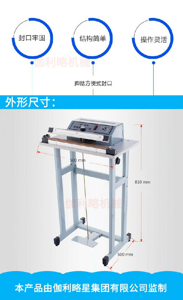 2、伽利略GFRD1000多功能墨轮印字封口机广泛应用于食品、医药、日用品、土特产、化工产品、电子产品、茶叶、化妆品、乳品、饮料、小五金、蔬菜种子、铝箔袋等产品。