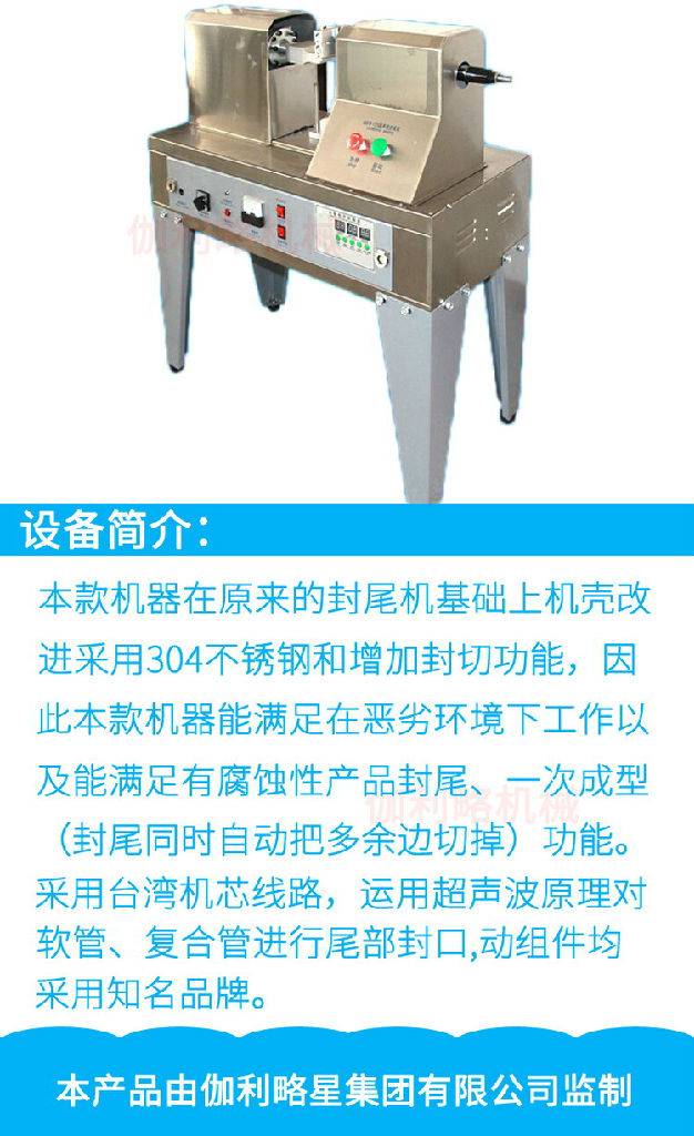 由于本机采用电子恒温控制和无级调速的传动机构,可封制各种不同材料的塑料包装袋,由于本机体积小,应用广泛,封口长度不受限制,所以可与各种包装流水线配套使用。它将是工厂、商店批量产品包装的较佳封口设备。
