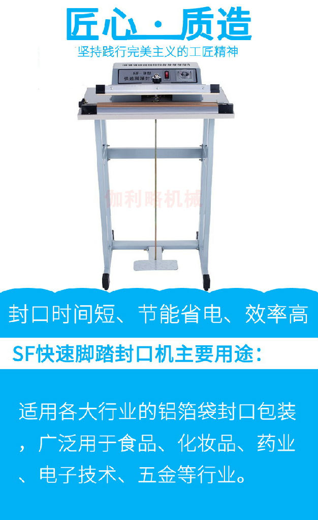2、伽利略GFRD1000多功能墨轮印字封口机广泛应用于食品、医药、日用品、土特产、化工产品、电子产品、茶叶、化妆品、乳品、饮料、小五金、蔬菜种子、铝箔袋等产品。