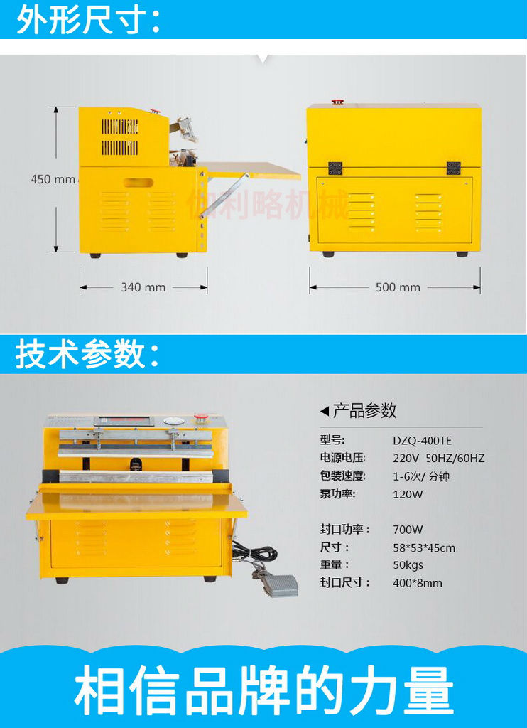 3、当输入电源电压高于250V或低于160V时(面板电压显示屏中显示值)应停止封口操作,待电源电压回复正常后或者加装自动稳压器,再进行封口。