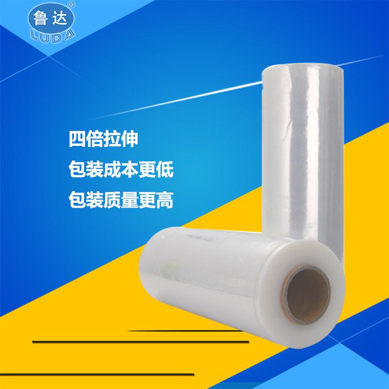 山东鲁达生产的拉伸缠绕膜,延伸率好,韧性强一般不建议使用太厚的缠绕膜。造成不必要的浪费,一般手用规格根据自身产品特性选择厚度:15mil-23mil即可,机用厚度:23mil--27mil即可达到一般需求的韧性和延伸率,降低使用成本(厚度越厚相应重量的拉伸膜可使用的米数越短,韧性越好,可减少缠绕的层数,节省使用成本)
