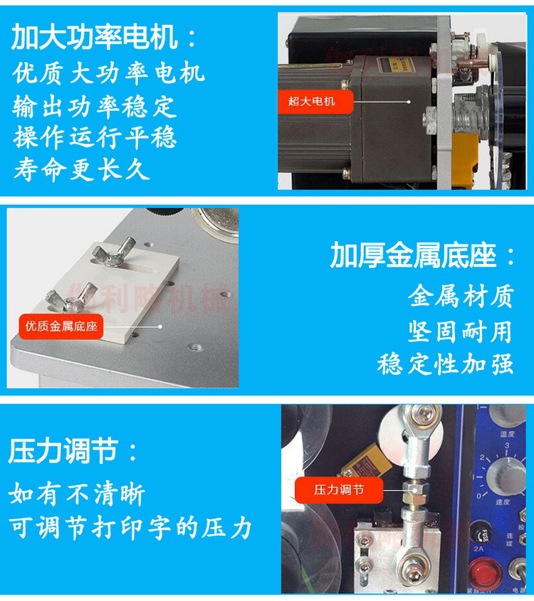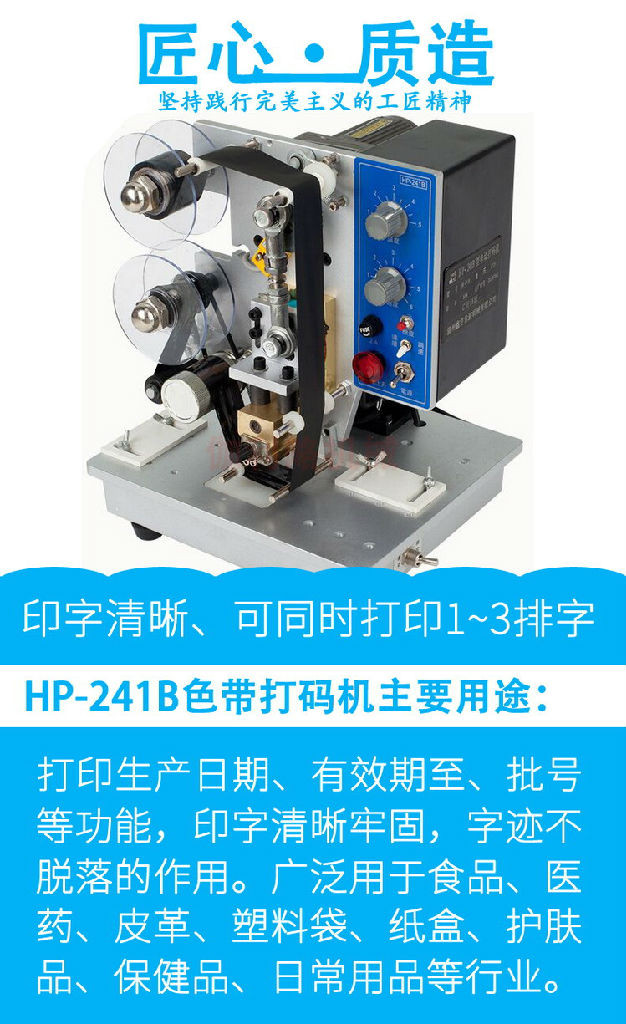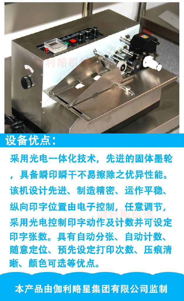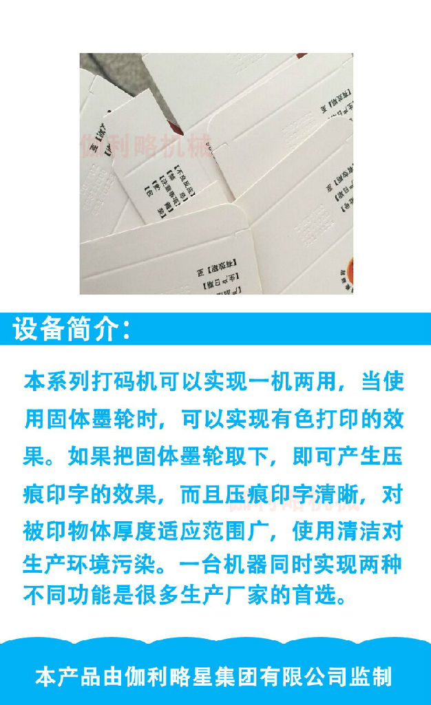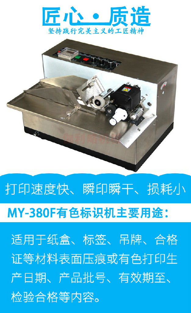 油墨移印打码机适用于食品、罐头、饮料、化妆品、电器、制药等行业的各类瓶,罐,杯,盒等包装上产品打印出产日期、保质期、批号条码、图案等,可在各种材料,不同面上印刷,印刷速度快,字体美观、清晰。打印后的效果达到喷码机喷印效果。凹版移印板分方形板和圆形活动板两种,可定制各种所需要的印刷字符。电动油墨移印机分为圆盘油杯型、长板油杯型、方板刮刀型三种,可以在金属、塑料、玻璃、陶瓷、薄膜、尼龙等产品上的任意部位凹凸不平面