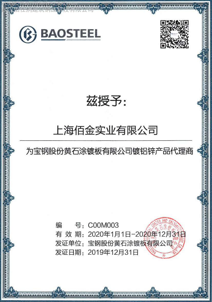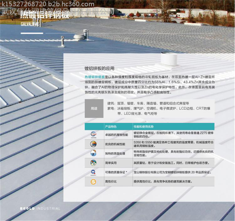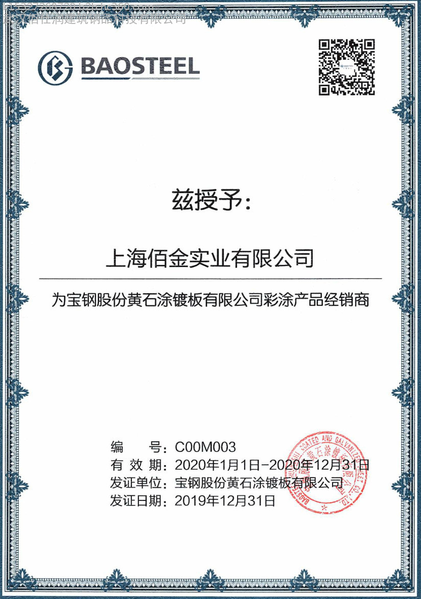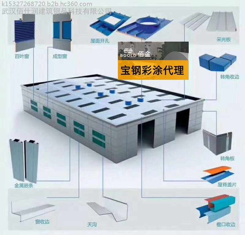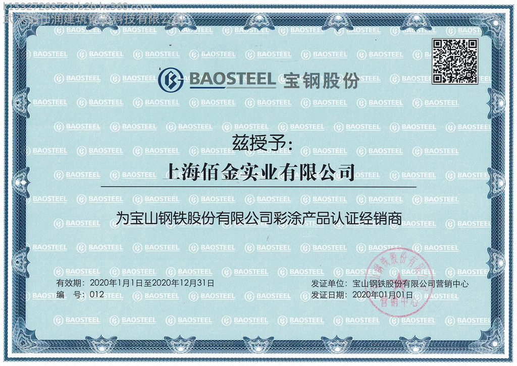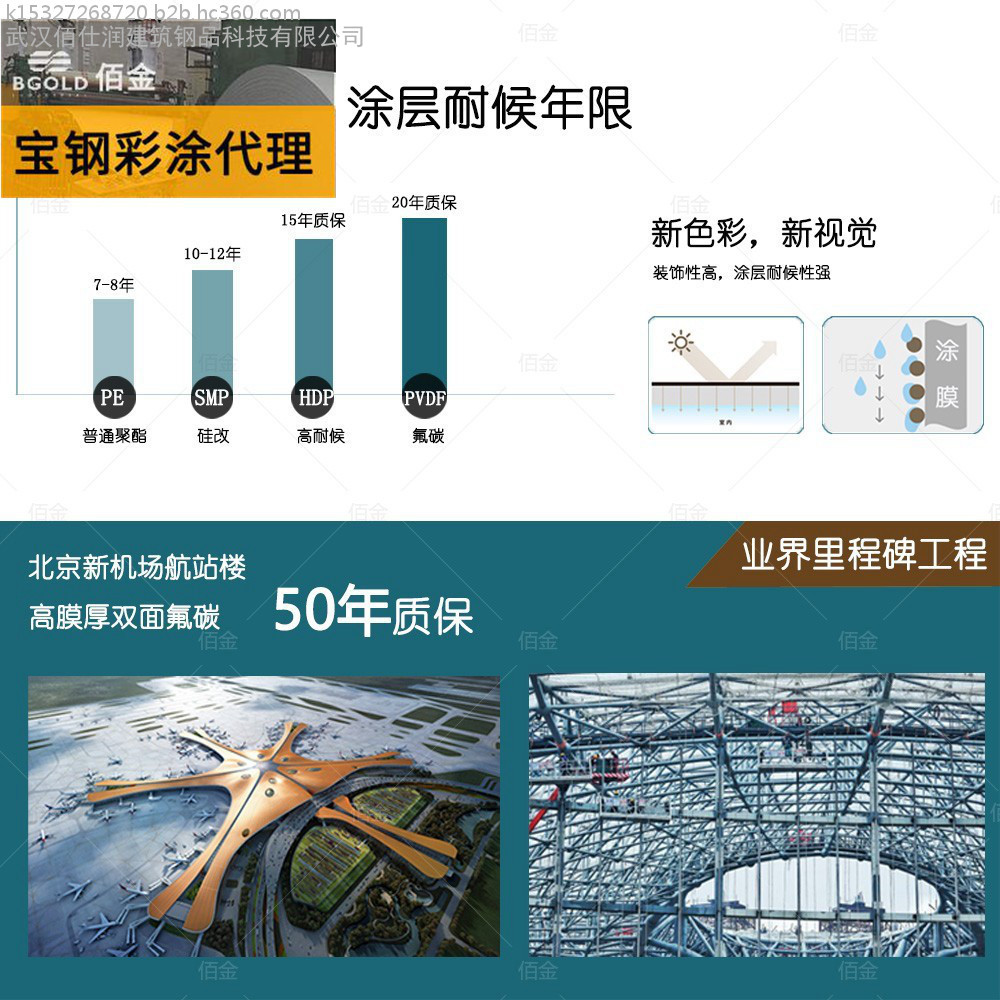 近几年先后获得全国双优外商投资企业、中国工业行业排头兵、湖北省外商投资先进技术企业、湖北省职业卫生示范企业、湖北省环境友好企业等殊荣;镀锌板和彩涂板双双被评为湖北省名牌、湖北省地产畅销产品。公司依托宝钢品牌优势、资源优势和管理优势,不仅生产经营得到稳步持续发展,而且知名度和影响力日益俱增。目前正以强制推进宝钢现代化管理为契机,以文化融合为抓手,朝着做强、做大的目标奋力前进,努力实现自身又好又快发展。基本信息,成立时间:1992年12月11日,主要经营范围:生产镀铝钢板、镀锌彩涂板、镀铝锌彩涂板、氟碳、高耐候彩涂及相关镀层制品,注册资本:800万美元,产能规模:38万吨,2009年销售量:21万吨,员工人数:300人,宝钢黄石彩钢板彩涂产品介绍,宝钢黄石彩钢板 彩涂产品具有优良的成型性能、耐久性能和丰富多彩的颜色,广泛应用于建筑、家电、家具等行业。彩色涂层钢板是以热镀锌板、热镀铝锌板、电镀锌板、冷轧板等为板,经表面预处理(化学脱脂及化学转化处理)之后,在表面涂敷一层或几层有机涂料,随后经过烘烤固化而成的产品。宝钢黄石彩钢板板采用优质热镀锌板、热镀铝锌板、涂料采用国内、外涂料生产商贝格、涂料研究院生产的PE普通聚脂、SMP硅改性聚酯、HDP高耐候聚酯、PVDF氟碳,配以宝钢的管理和技术以及在彩涂板生产方面的经验,因此可以生产出质量优良、外观优美的各类彩涂板,另外,还可以生产抗静电、隔热、自清洁、医用净化板、绒面板等功能性彩涂。宝钢彩涂板因具有优良的成型性能、耐久性能和丰富多彩的颜色而被广泛的应用于建筑、家电、家具等行业。本网站数据部分来源宝钢彩涂板企业标准BQB/440-2014,宝钢彩涂板产品手册,及工程案例。