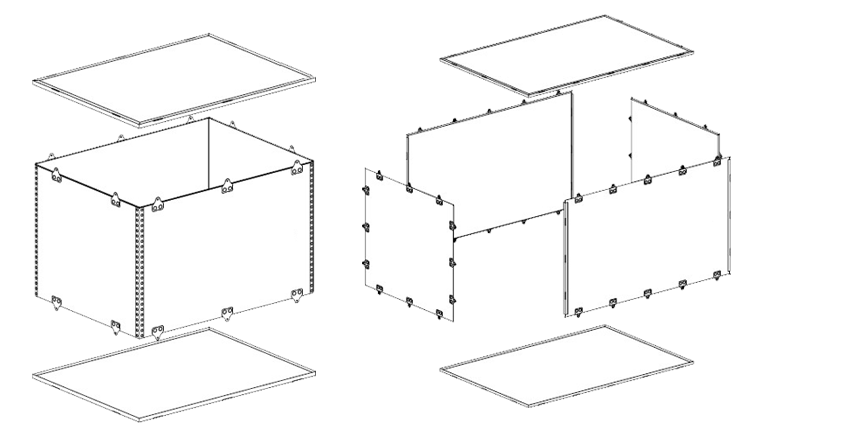 便于拆卸、连接可靠:产品可以折叠后贮运,而且采用钢边连接,极大的降低了运输成本,有效地节约的储存空间。较适合用于包装重量在2吨以下的物品,是长期运输及长期储存的上佳选择。通常箱体可以拆分为六片(S型)或者三片(P型),便于运输,使用的时候再组装起来。边长一般在300mm—2000mm左右。