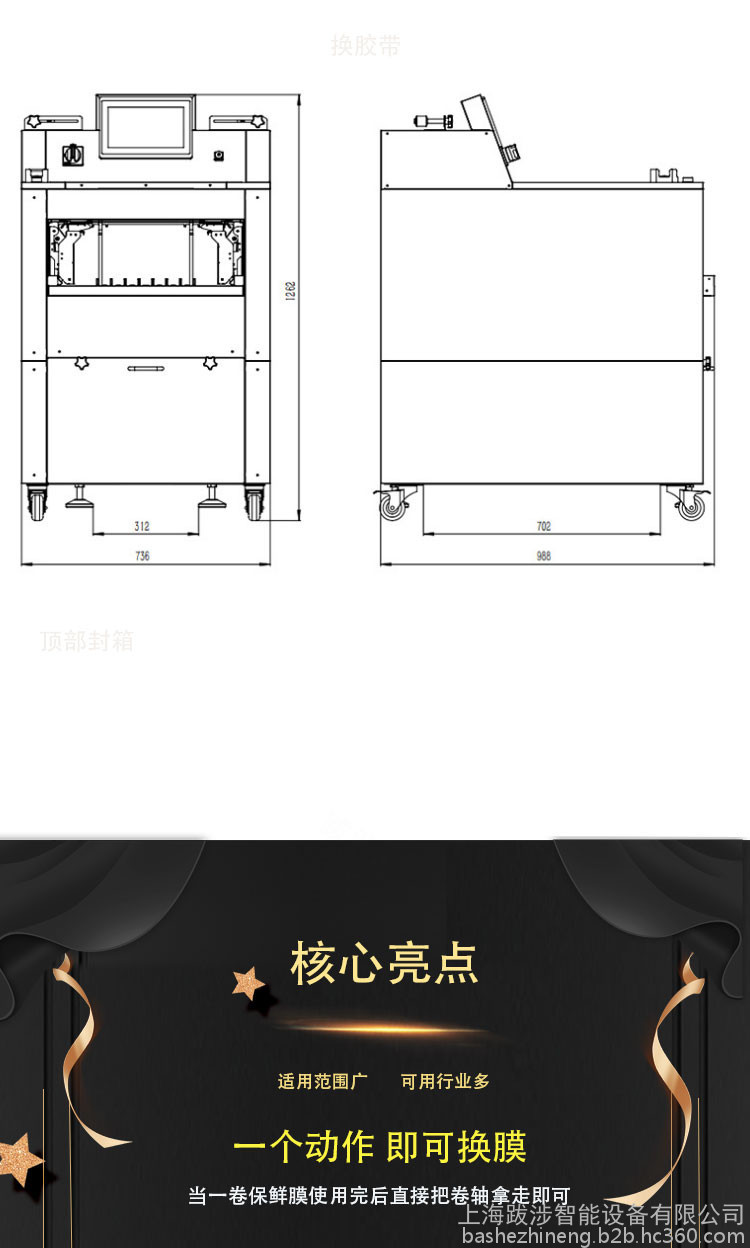| 规格 | 半自动保鲜膜包装机,半自动保鲜膜包装机加称重贴标 |