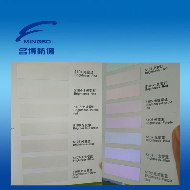 名博防伪技术(深圳)有限公司//www.mingbo.co/隶属于名博集团(香港)(1993年成立),是集团设于中国大陆的总公司。公司注册资金3000万元,坐落于深圳光明新区高新科技园西区中科诺科技园,所生产的光变油墨是一种随视觉角度不同可发生颜色变化的特种防伪油墨。光变油墨印刷的印品,在白光下正看或侧视,随着人眼视觉角度的改变,呈现两种不同的颜色,光变特性强,色差变化大,特种明显,不需要任何仪器设备都可以识别,其颜色角度效应无法用任何高清晰度的扫描仪、彩色复印机及其他设备复制,是国际上的高端防伪油墨。