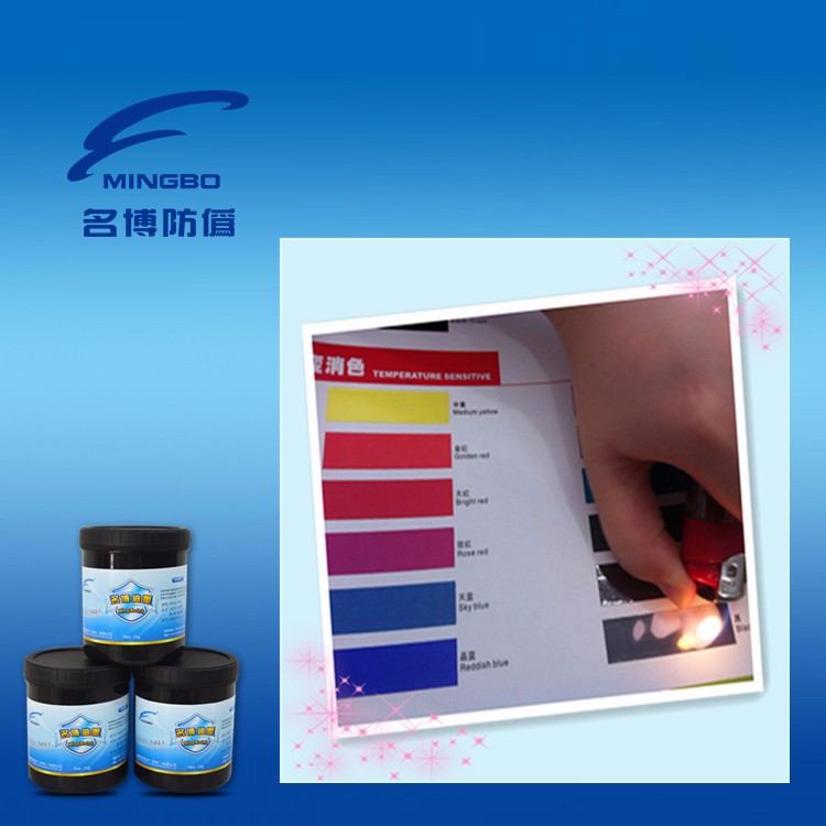 名博防伪技术(深圳)有限公司//www.mingbo.co/隶属于名博集团(香港)(1993年成立),是集团设于中国大陆的总公司。公司注册资金3000万元,坐落于深圳光明新区高新科技园西区中科诺科技园,所生产的温变油墨(热敏油墨)是一种能随温度变化而颜色发生变化的油墨。该油墨不仅用在**、药品、化妆品的标签、包装、说明书及其它特种用途的印刷,也广泛运用于各种创意用品、工艺品的行业中。根据温变效果的特点,可以分为可逆温变消色油墨、可逆温变显色油墨、可逆温变**及不可逆温变显色油墨。