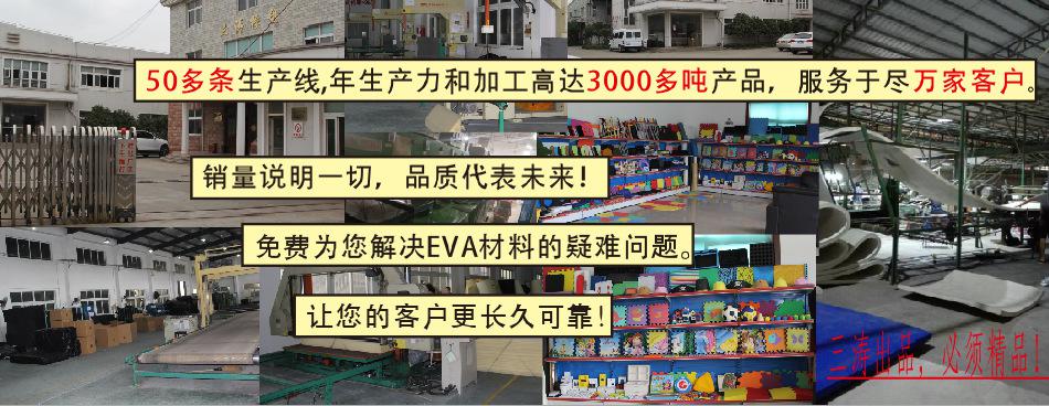 上海三涛橡塑制品有限公司,位于上海市嘉定区嘉安公路633号,是一家专业生产、研制、销售橡塑发泡产品为一体的综合型企业主营范围:黑白、彩色EVA、高弹EVA、环保EVA、阻燃EVA、防静电EVA及各种EVA加工成型等.产品品**良,广泛应用于鞋材、箱包、玩具、地垫、家居用品、体育用品,密封件、隔热保温材料、电子、仪器、家电五金、**家具、电脑、电视等**产品的防震缓冲包装等。EVA材质顺利通过欧洲EN71环保认证美国ASTM无毒认证!