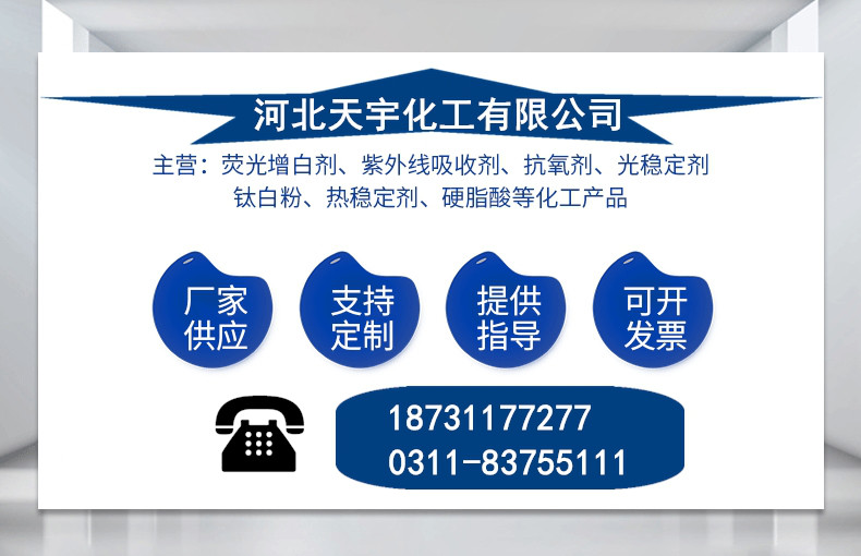 本公司供应天宇复合稳定剂天宇 复合稳定剂 与PVC树脂有良好的相容性和分散性,初期色相好,用量小,用于型材、管材、板材、电线电缆料的加工等。 25KG/包 36个月 河北,质量保证,欢迎咨询洽谈。