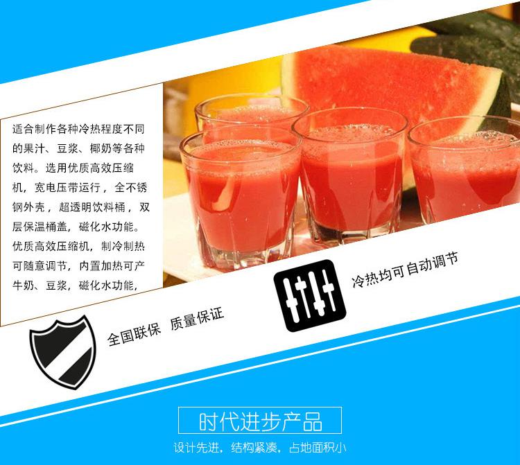 **高效压缩机,制冷制热可随意调节,内置加热可产牛奶、豆浆,磁化水功能,超透明饮料桶盖,双层保温桶盖。