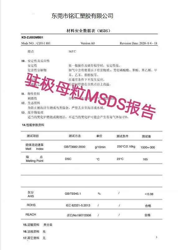 大量现货**供应熔喷料 无纺布 驻极母粒 增熔剂 顺滑剂 柔软剂 熔喷布-专用驻极母粒。 操作:100公斤熔喷pp料添加1.5公斤驻极母粒,用混料机搅拌均匀即可使用,驻极母粒作用**是-储存静电量,提高熔喷布过滤效果