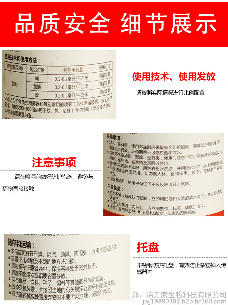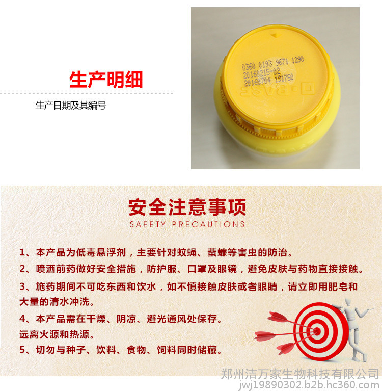 ??悬浮剂剂型对哺乳类动物非常安全,且可生物降解,不会在环境中累积。对蚊子、苍蝇、蟑螂等杀伤力比常用卫生杀虫剂高1-3倍。广泛适用于民宅、厨房、宾馆、医院、动物园、畜牧场、旅游度假区等场所,已在我国卫生防疫部门广泛使用。